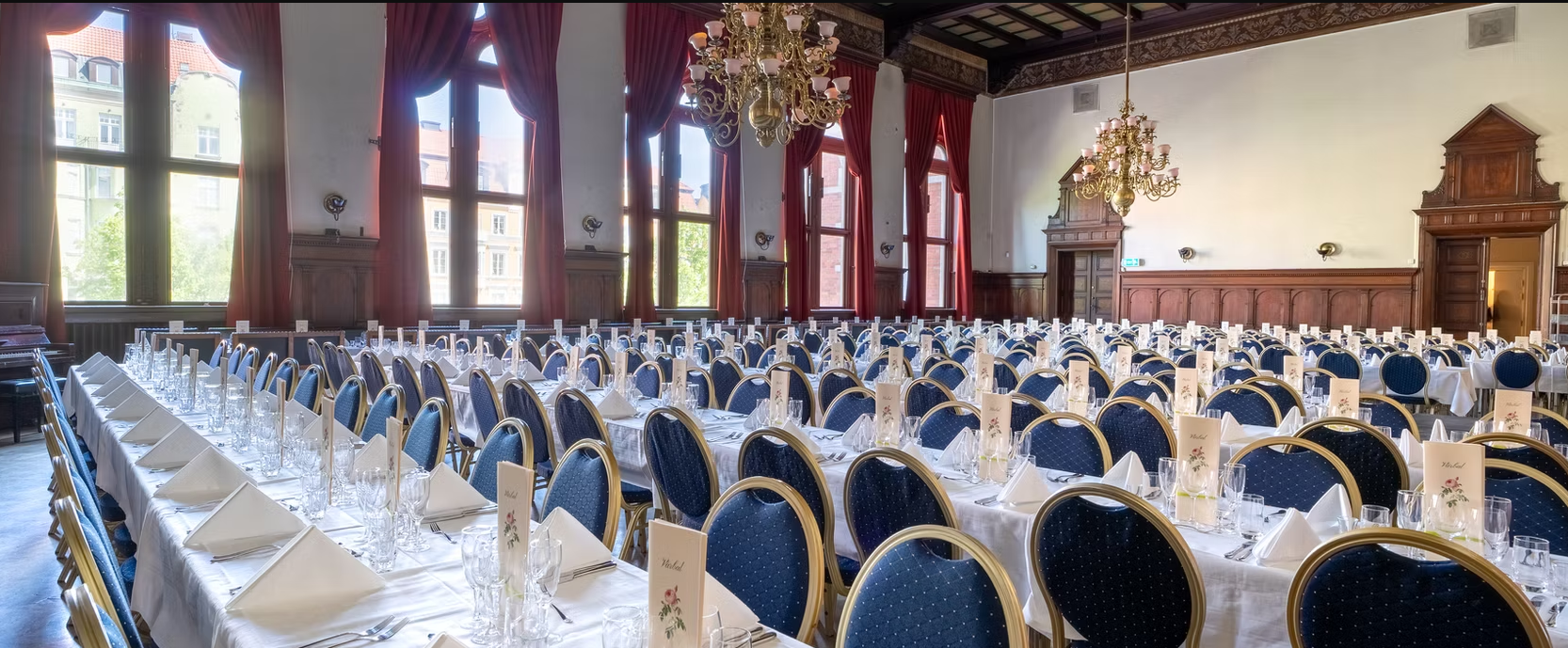 The dinner is set at Norrland’s student nation located centrally in Uppsala by the river Fyris. Starting at 19:00, you can attend a three course meal with entertainment and good company in a festive and historical environment.
